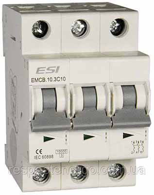 Модульний автоматичний вимикач EMCB.603C10, 6 кА, 3п, х-ка С, 10 А